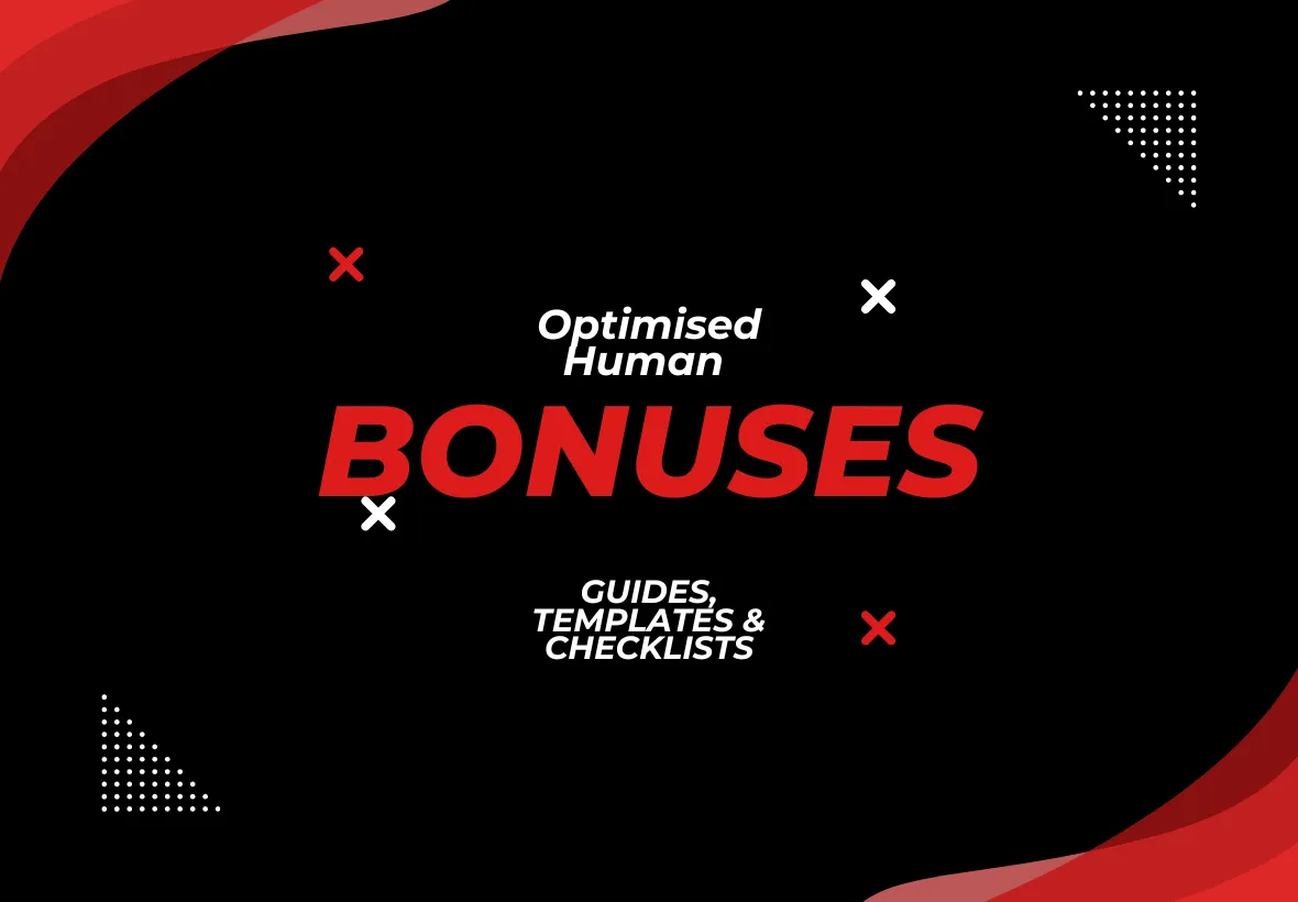 You are getting the complete Optimized Human System, available instantly. You are getting all 5 transformation pillars with full implementation guides. You are getting complete reference materials, checklists, and the Product Replacement Guide. You're getting the exact system I used to transform in 6 months after being stuck for 3 years.